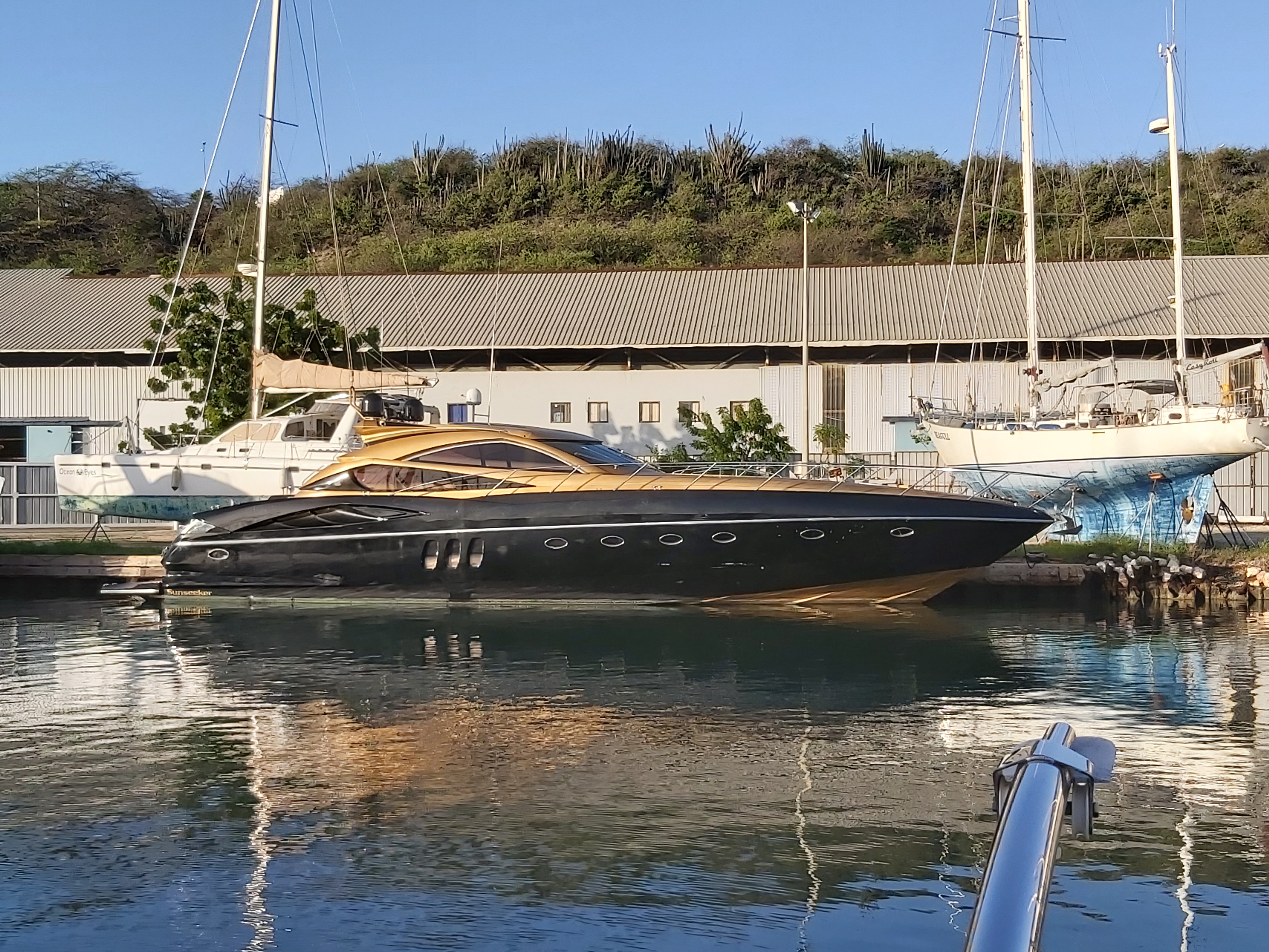 Sailing out of Curaçao. The commentary on the super yacht!